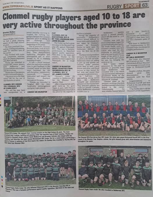Semi Final Best wishes to the Clonmel RFC U18’s who take on Youghal RFC this coming Sa...