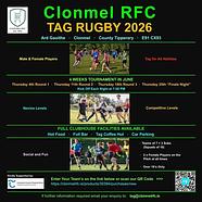 We are delighted to announce our Clonmel RFC Tag Rugby 2026 Tournament Enter your team...