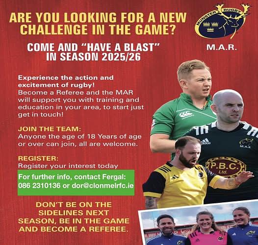 Whether you’re interested in refereeing Underage, Senior Club Rugby, Provincial, even European, or International, then this is your opportunity to begin your journey.