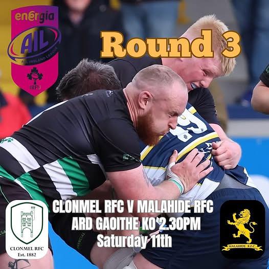 For Round 3 of the AIL this Saturday, we look forward to welcoming Malahide RFC to Ard Gaoithe. This will be a very tough match for the lads so come out in force please to support. @malahiderfc #clonmelrfc #allirelandleague @anyscor_sports @finalwhistleie @irishrugbygrassroots