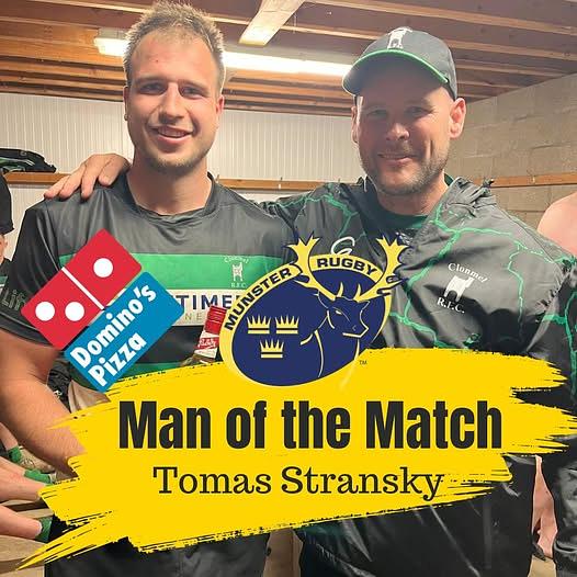 Well done to Man of the Match Tomas Stransky who played Tighthead for the full 80 minutes against Malahide. Well done Tomas. Enjoy your vouchers. #clonmelrfc #sponsoredbydominos