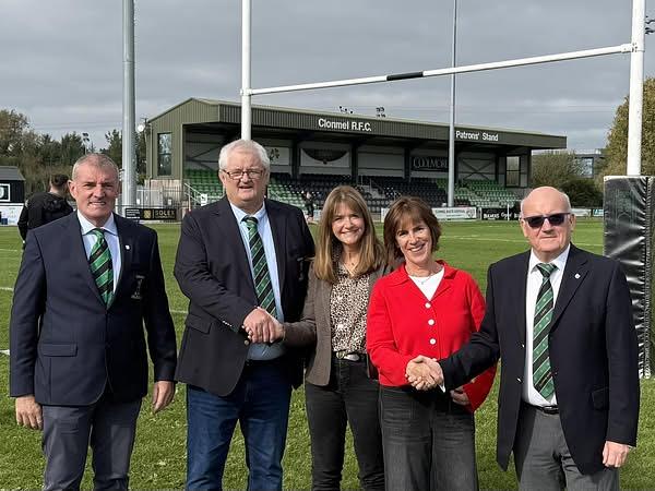 Paddy O’Donnell (Clonmel RFC Chairman), Paul McGrath (Clonmel RFC President), Schira Lane (CHSG Fundraising Secretary), Liz Binchy (CHSG Fundraising Chairperson) and Paul Cremmins (Clonmel RFC F&D Chair).