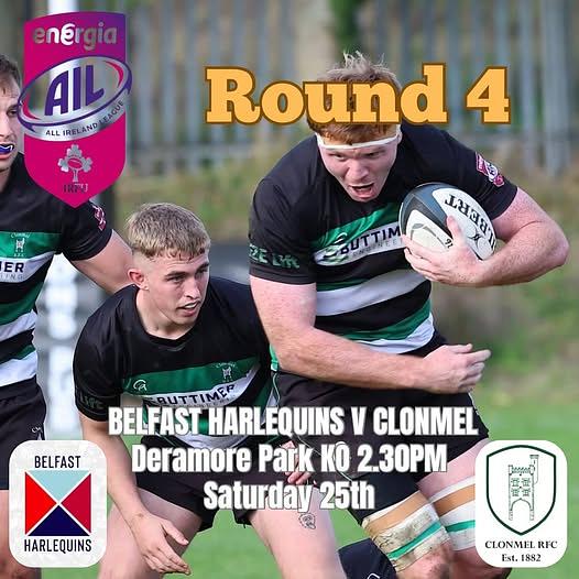 After a week off, our Seniors are back in action for Round 4 of the All Ireland League this Saturday. It’s an away fixture in Deramore Park, Belfast. All support most welcome on the road. #clonmelrfc @belfastharlequinsrfc @finalwhistleie @anyscor_sports @mjcrugby