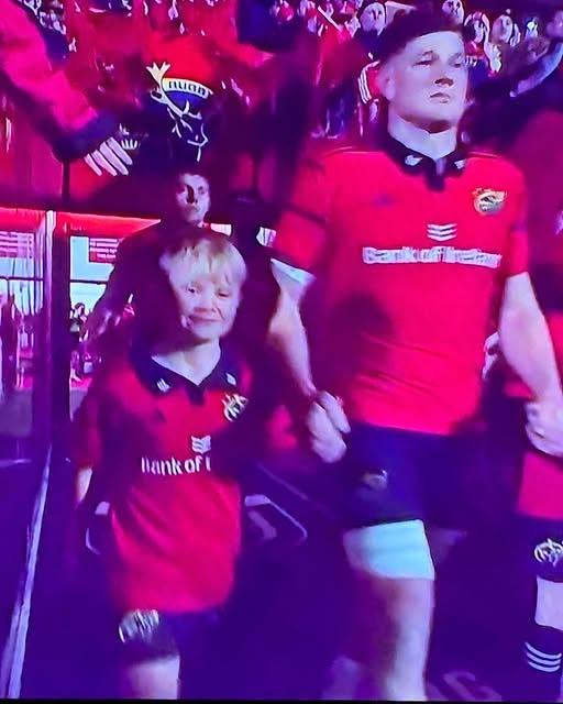 Jeremiah English of Clonmel RFC U11 squad was proud as punch when he and Jack O’Donoghue captain of Munster Rugby led the way for the Red Army onto the field in Thomond Park’s for the BKT URC R5 clash with local derby rivals Connacht on Saturday night 25th October 2025