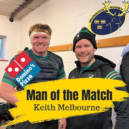 Huge well done to Keith Melbourne, Round 4’s Man of the Match. Keith put down a huge shift up front and scored a try to boot. Well deserved Keith. Enjoy your @dominospizzaclonmel vouchers. #clonmelrfc @mjcrugby @irishrugbygrassroots