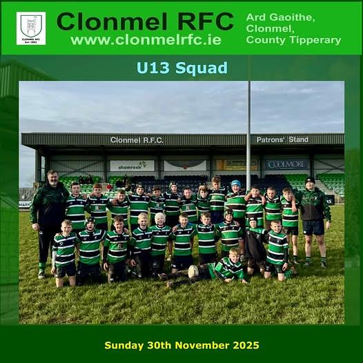 Clonmel’s focus now shifts to the knockout stages. Thanks to all parents for their ongoing support, and to Kevin Cronin for presenting the pitch in top condition. Training continues Tuesday and Thursday at 6.15 pm.