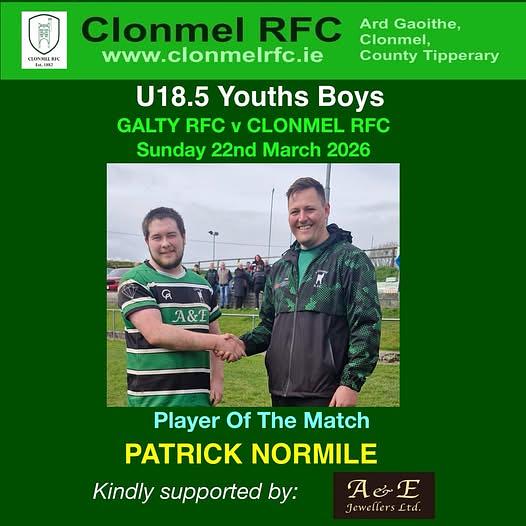 Special thanks to the A&E Jewellery, Showgrounds SC, Clonmel for their continuous and generous sponsorship and support of the U16’s Player Of The Match Award.