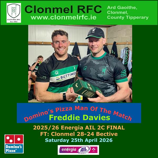 Special thanks to Dominos Pizza, Cashel Road, Clonmel for their continuous and generous sponsorship support of the Man Of The Match Award.
